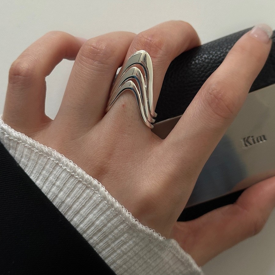 【两件包邮】镂空多层V形线条戒指女几何简约时尚百搭个性开口指