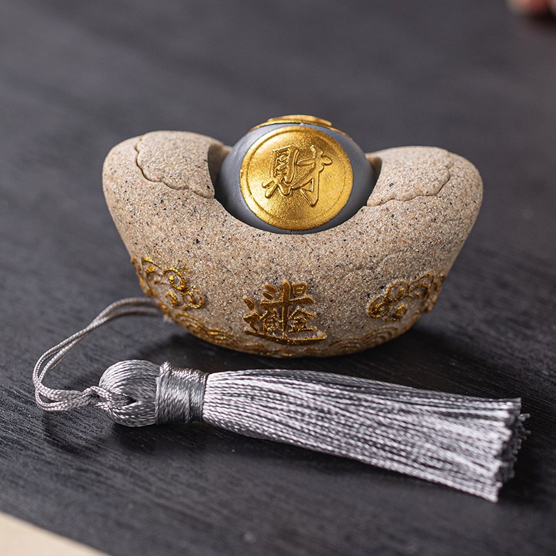 创意招财元宝茶宠摆件中式转运球手把件特色文创礼品客厅桌面装饰