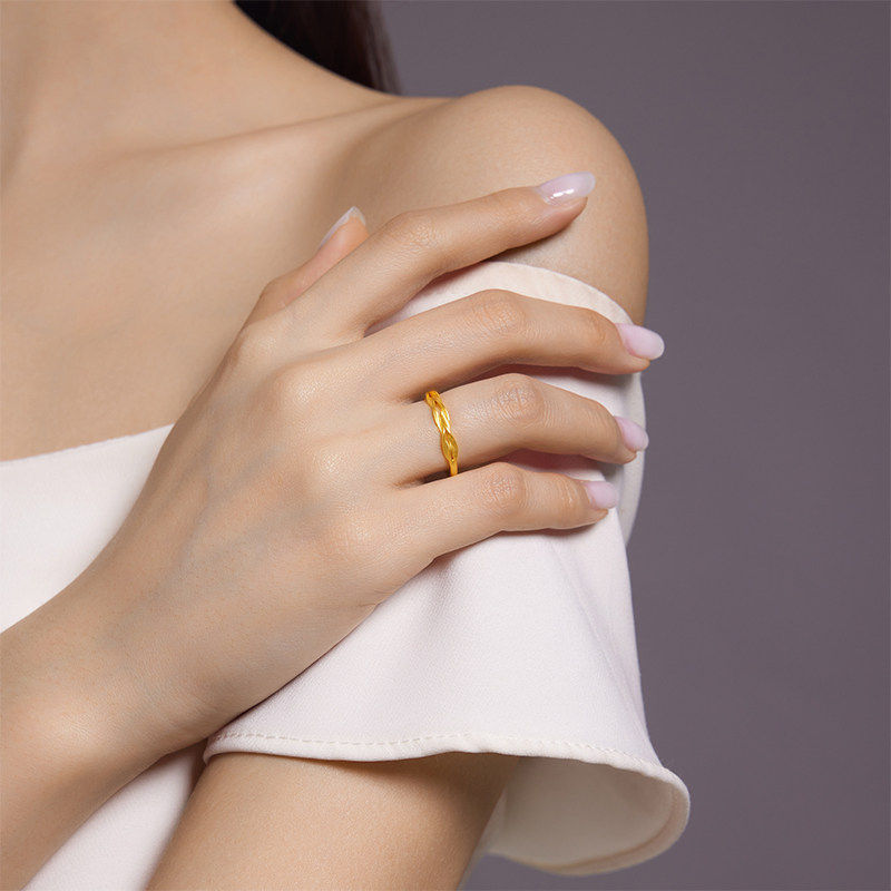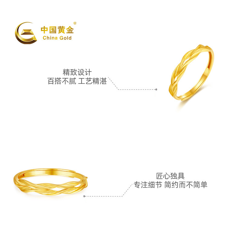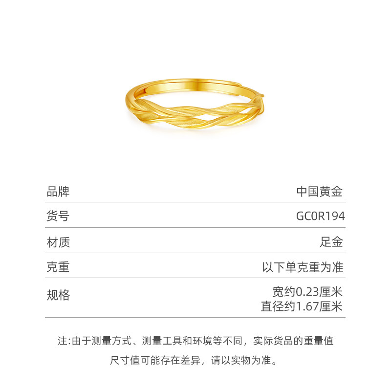【中国黄金官方店】足金5G麦穗戒指时尚气质百搭首饰新品送女友