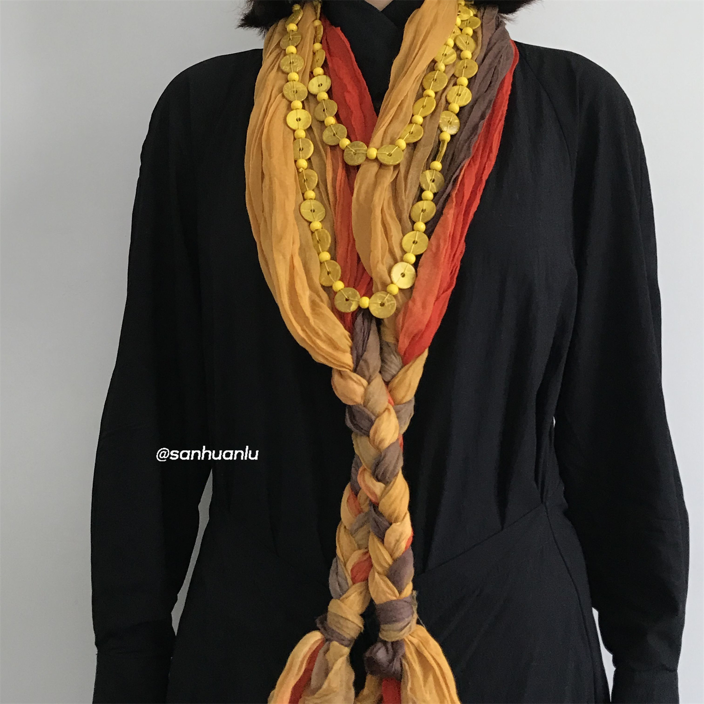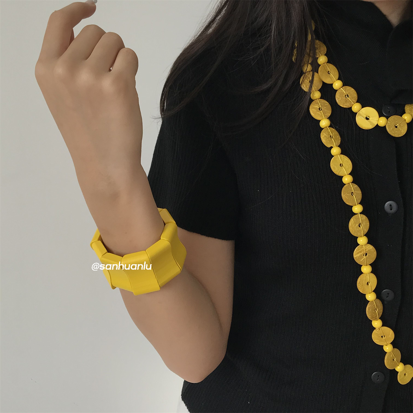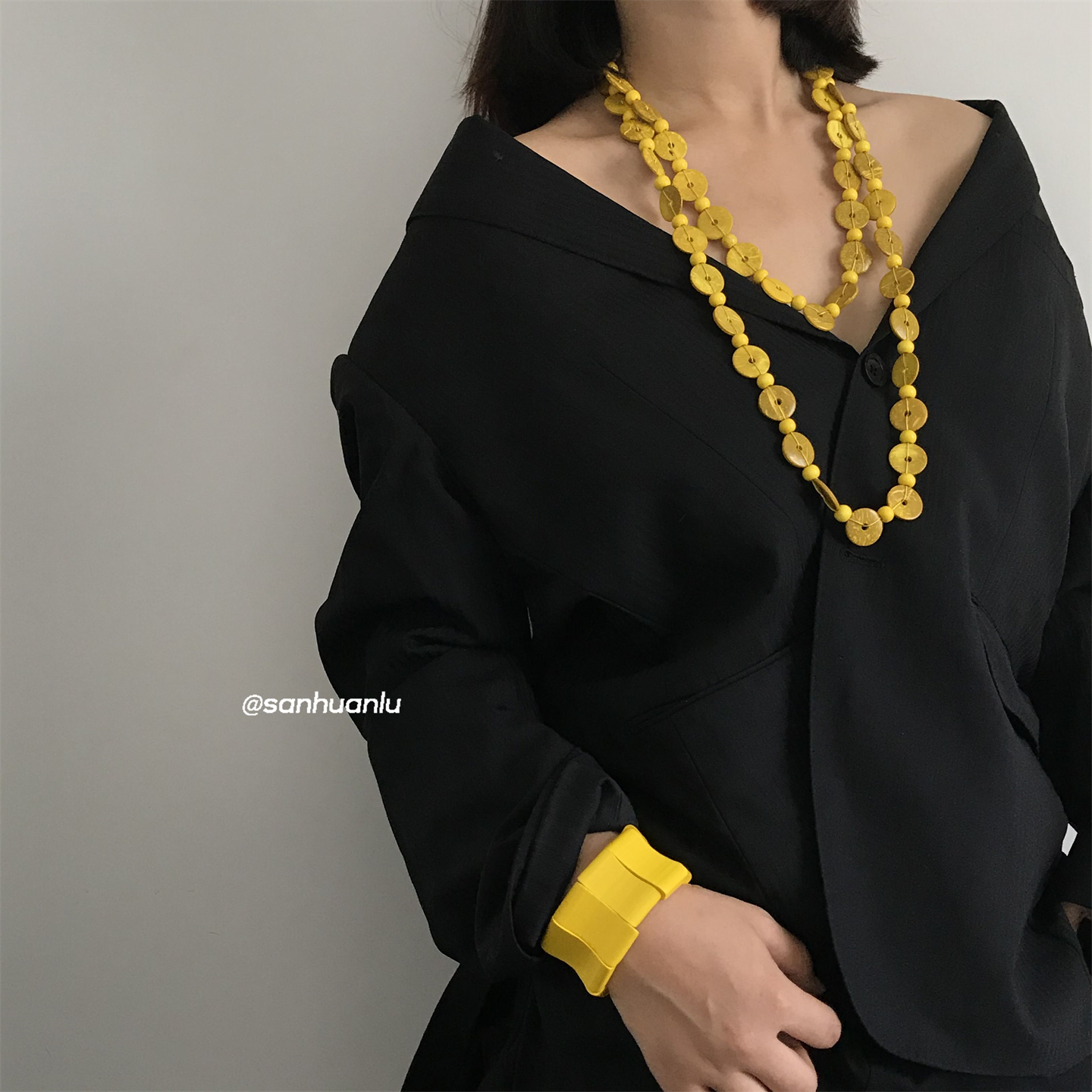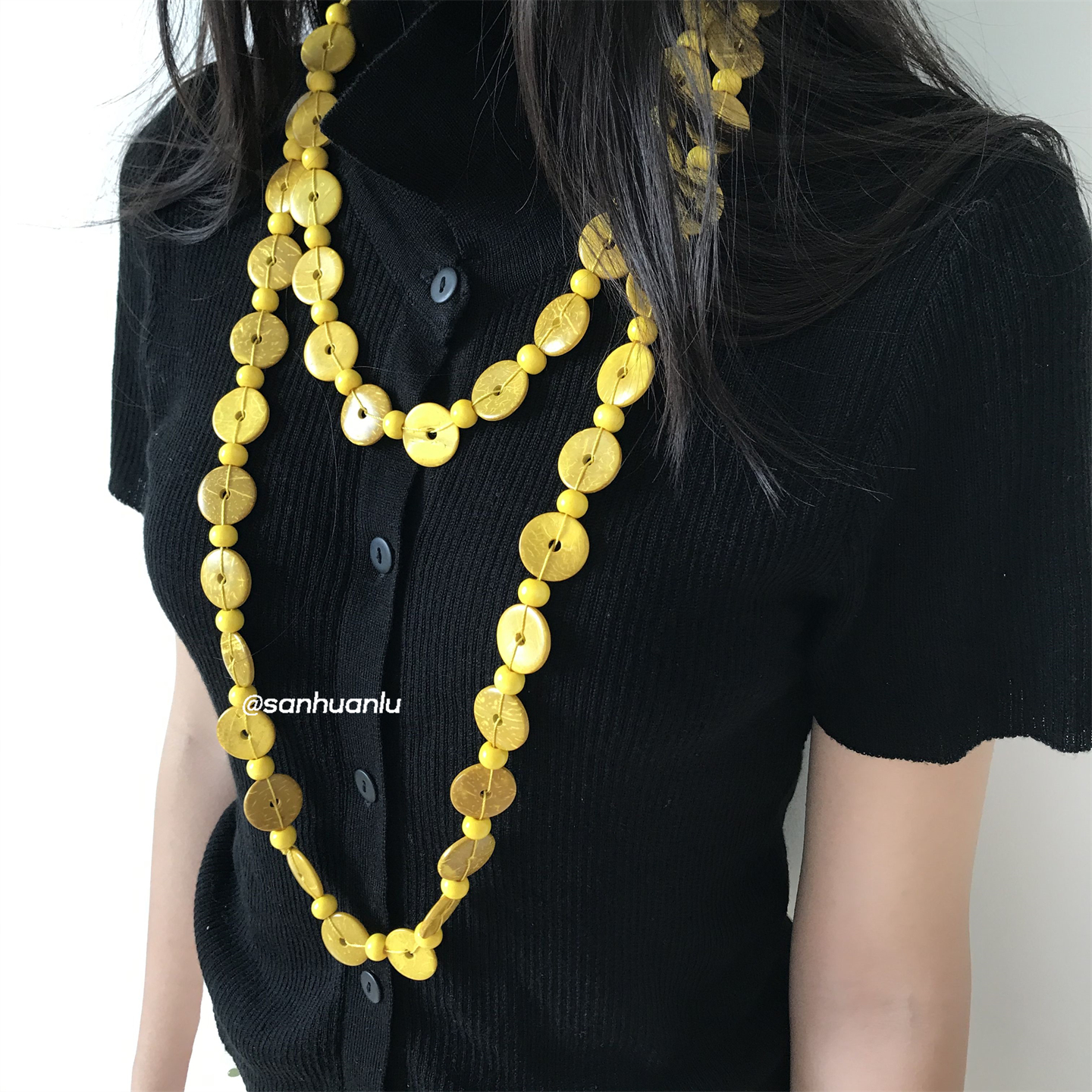 三环路简约椰壳黄色长项链高级感多层叠戴气质老钱风个性百搭度假