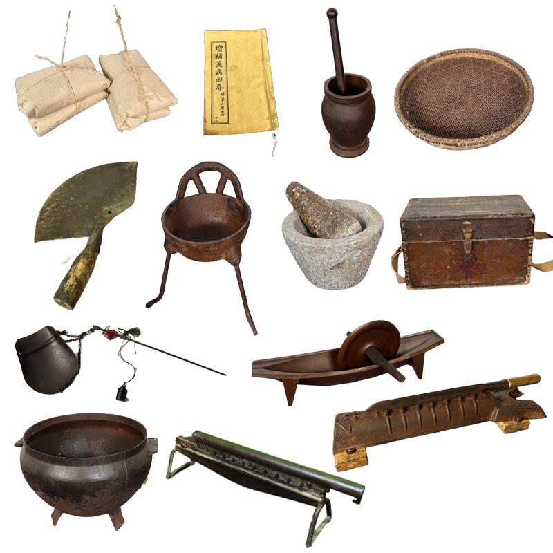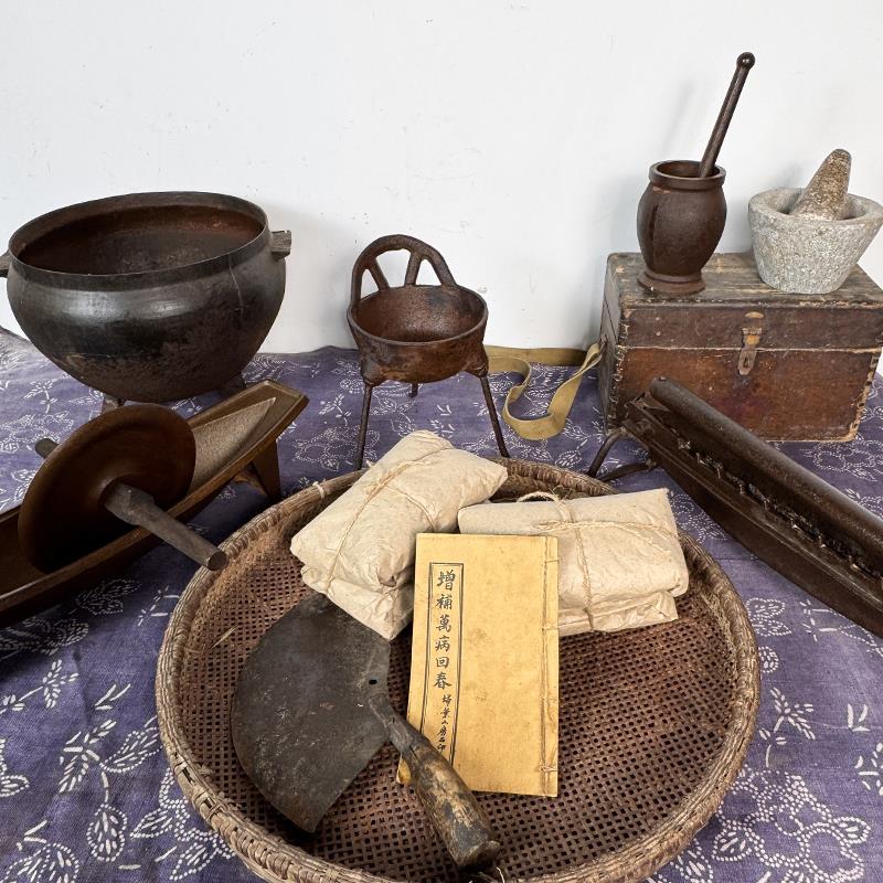 民俗老物件老式中医药中药馆药碾子捣药罐铡刀小药秤药箱装饰摆件