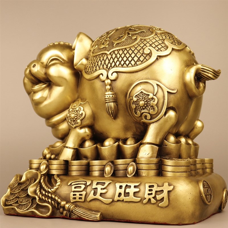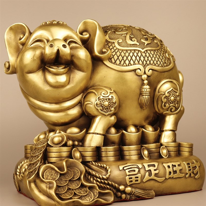 铜猪摆件存钱罐生肖猪福猪客厅办公室装饰乔迁礼品元宝金猪补角件