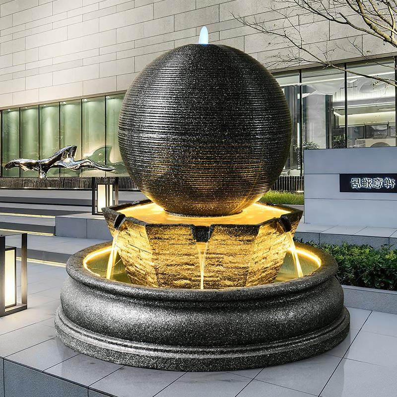 大型圆球流水喷泉摆件创意庭院落地鱼池水景室内户外招财转运装饰