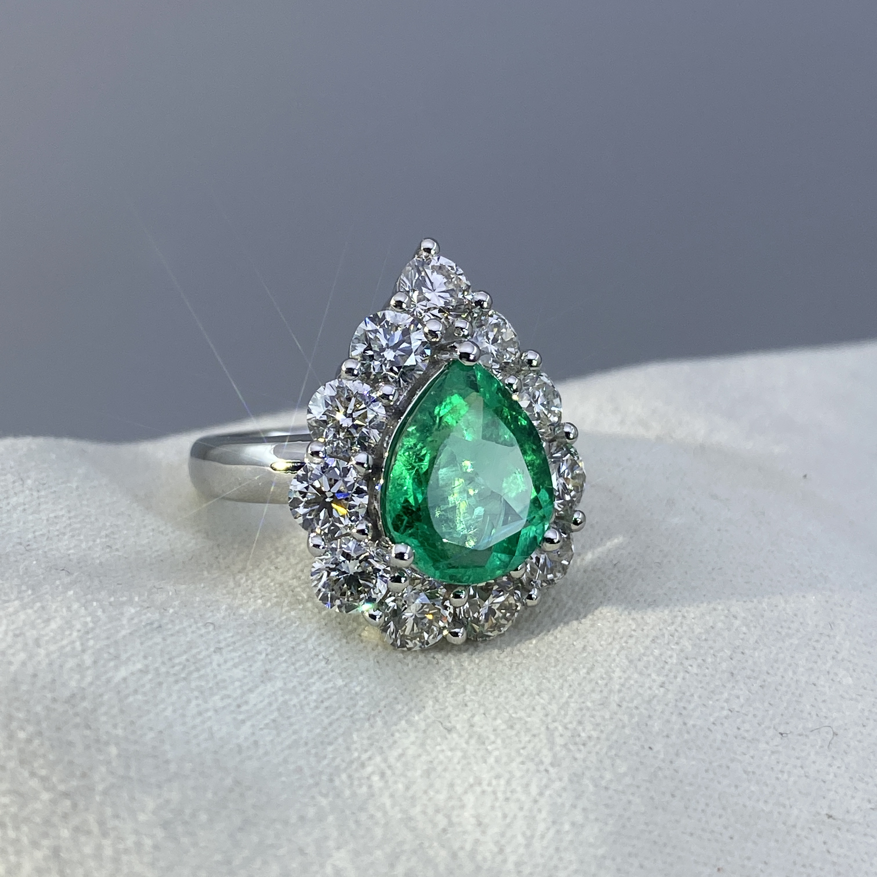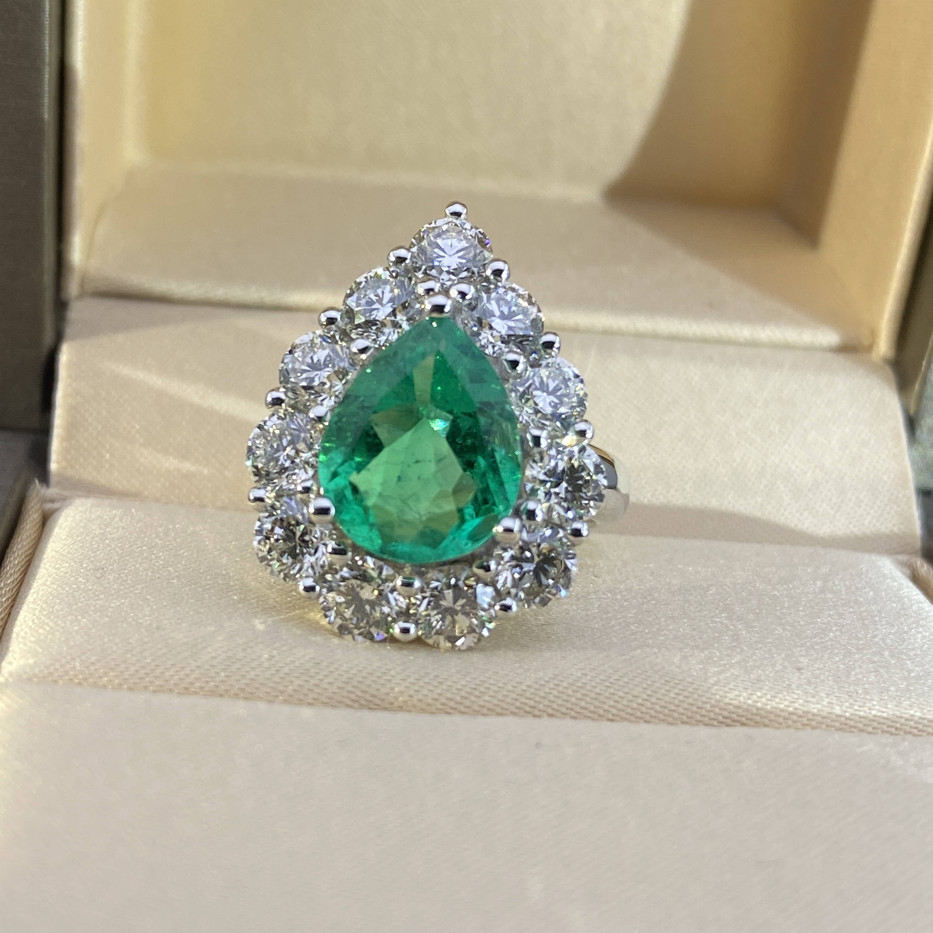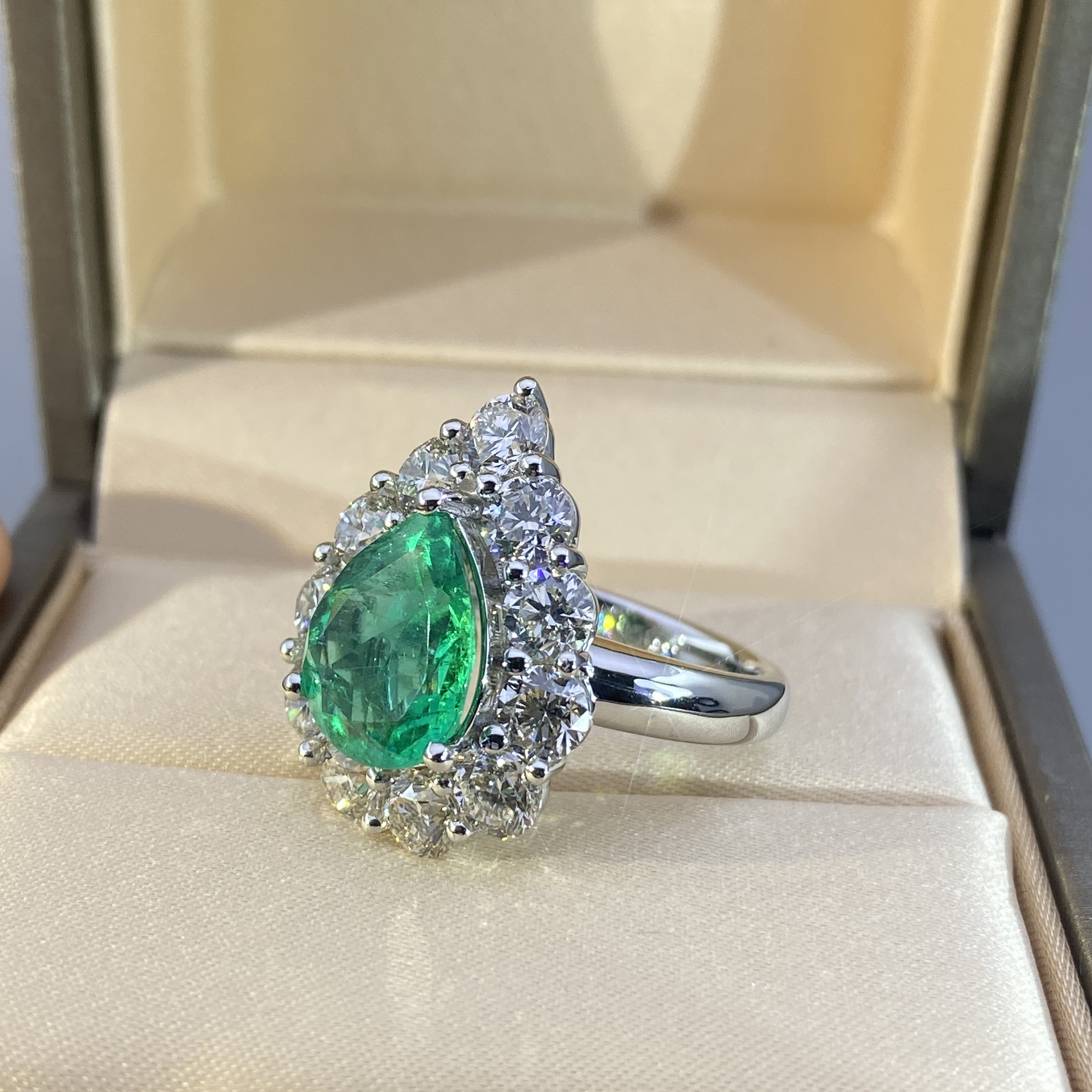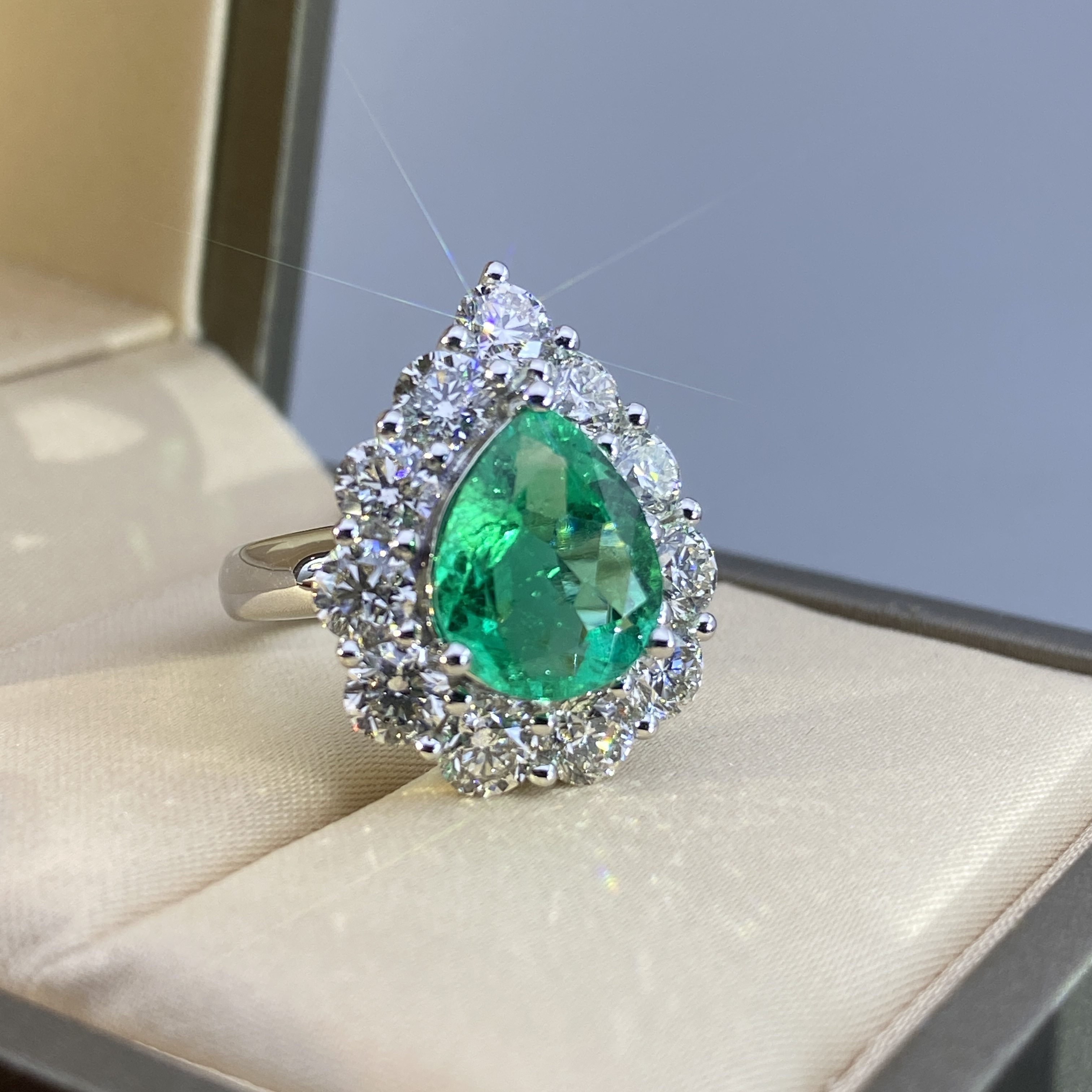 18K金钻石戒镶嵌培育祖母绿戒指女款时尚百搭指环送女友轻奢礼物