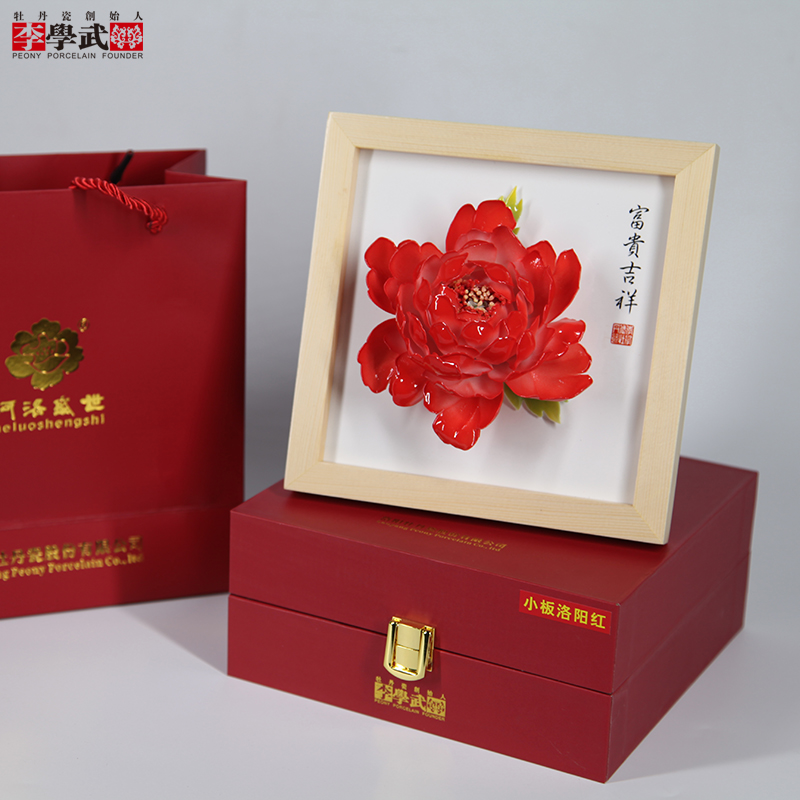 洛阳李学武牡丹瓷摆件陶瓷牡丹花工艺品摆台公司活动会议高档礼品