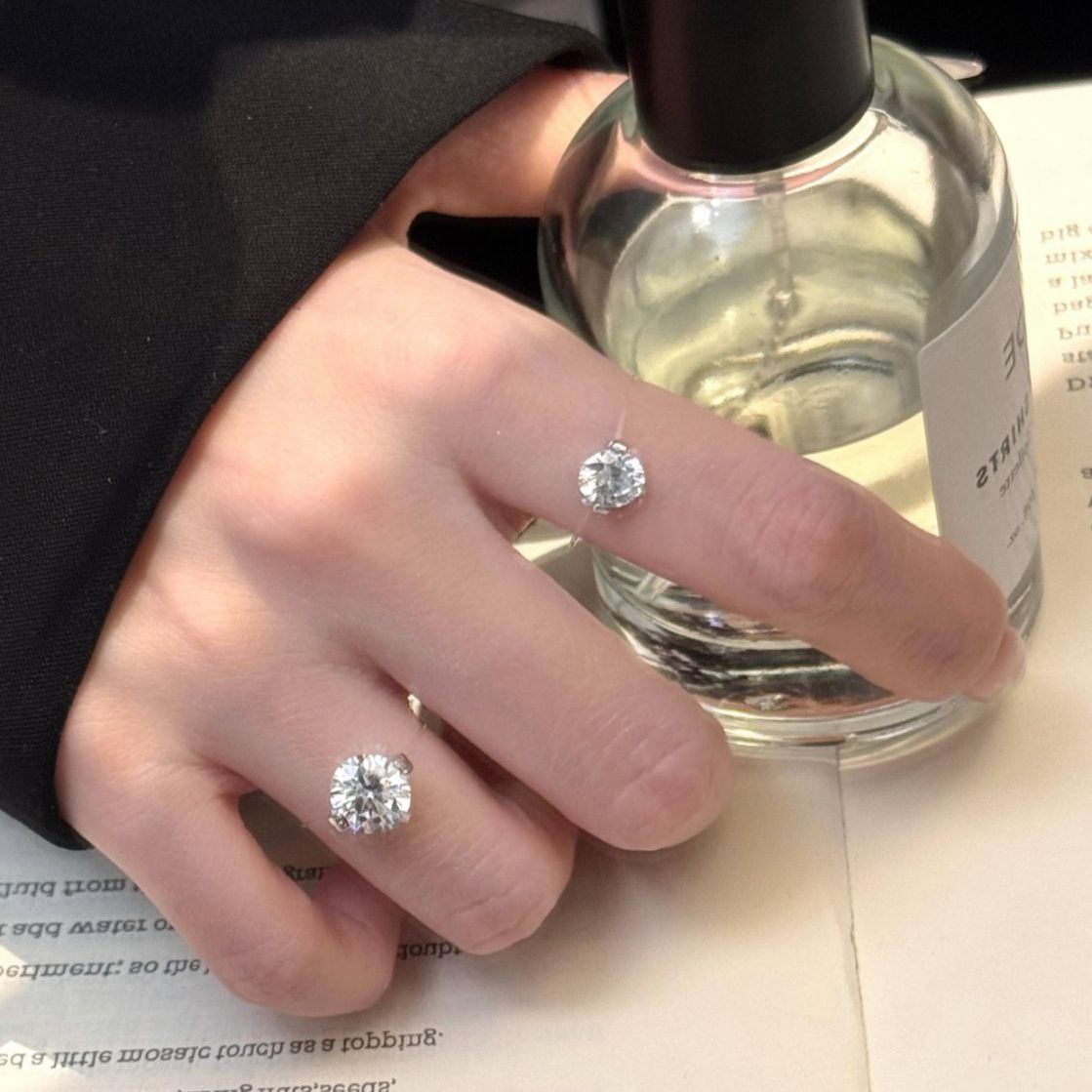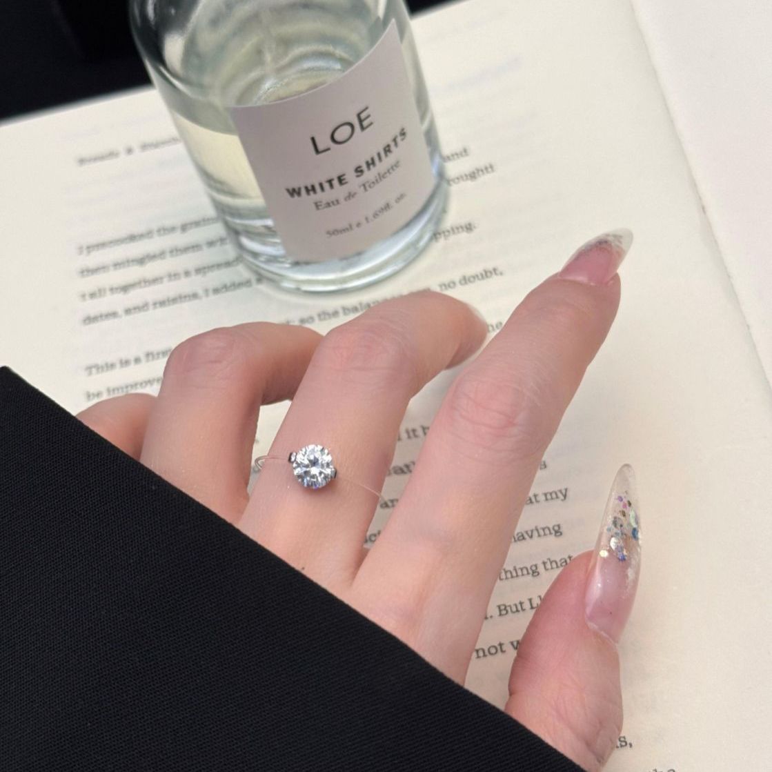 人鱼隐形之泪轻奢透明鱼线设计法式戒指简约爆闪高级锆石新款