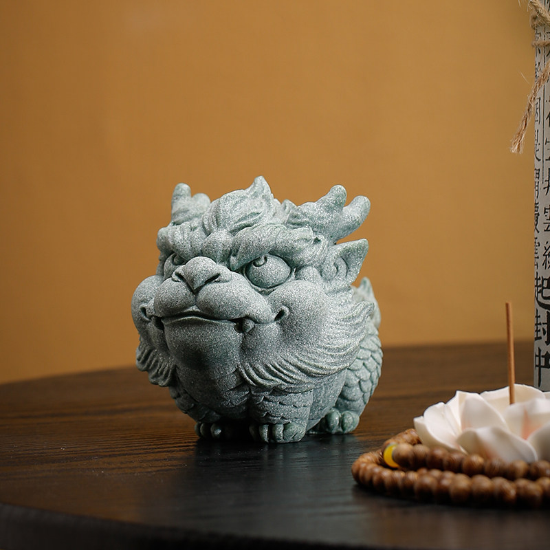 中式精品青砂石桌面招财麒麟摆设摆件创意鱼缸沉水造景貔貅装饰品