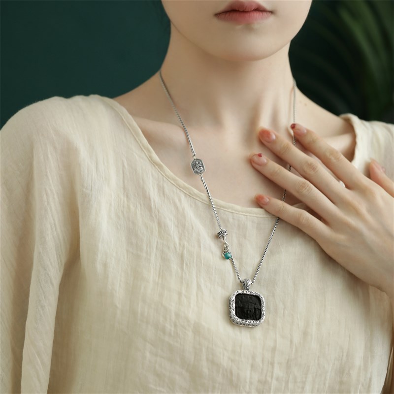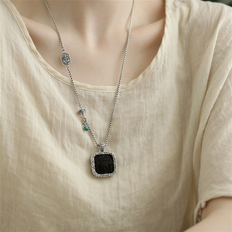 +925银黑檀木扎基拉姆做旧吊坠女仅吊坠国风时尚个性Y项坠女新中
