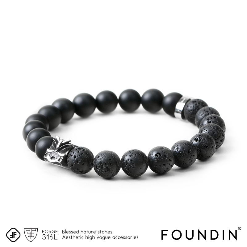 顺丰直发|FOUNDIN凡汀 财运貔貅转运珠黑玛瑙火山石情侣手链|刻字