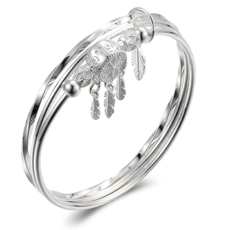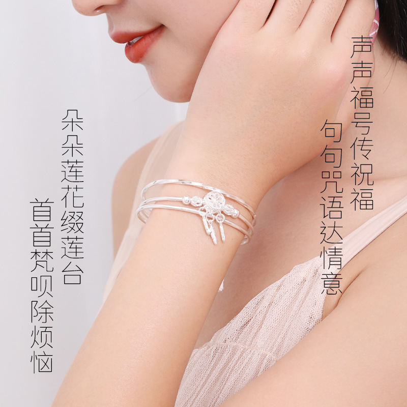 银镯子情人节礼物手镯女生小众手环年轻款999三环捕梦网足纯银
