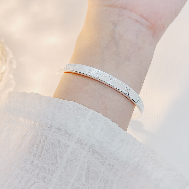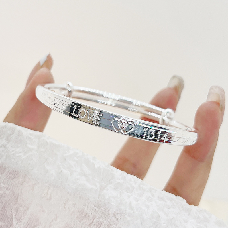 手镯新款love1314七夕情人节9999镯子爱心年轻款送女友足银纯银