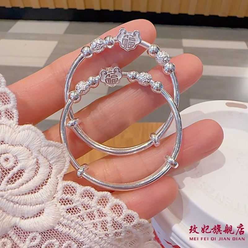 足银9999长命锁福字如意纯银手镯童镯男女宝宝新生婴儿满月礼物