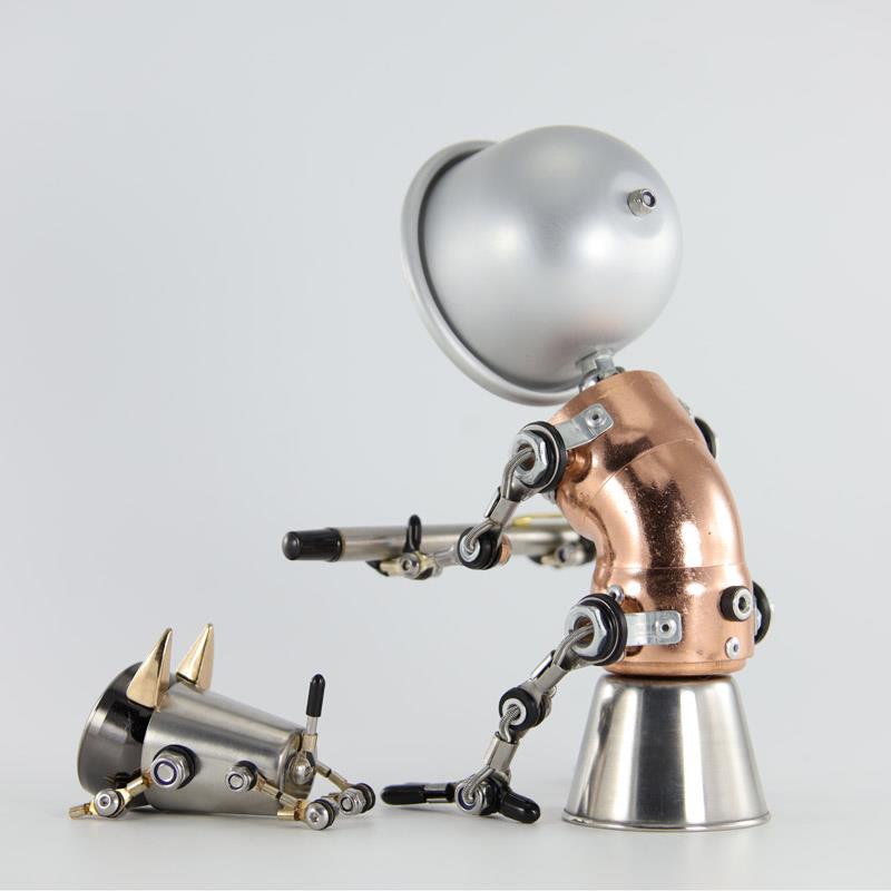 金属朋克风格机器人桌面摆件小夜灯台灯触摸感应开关可调光可充电