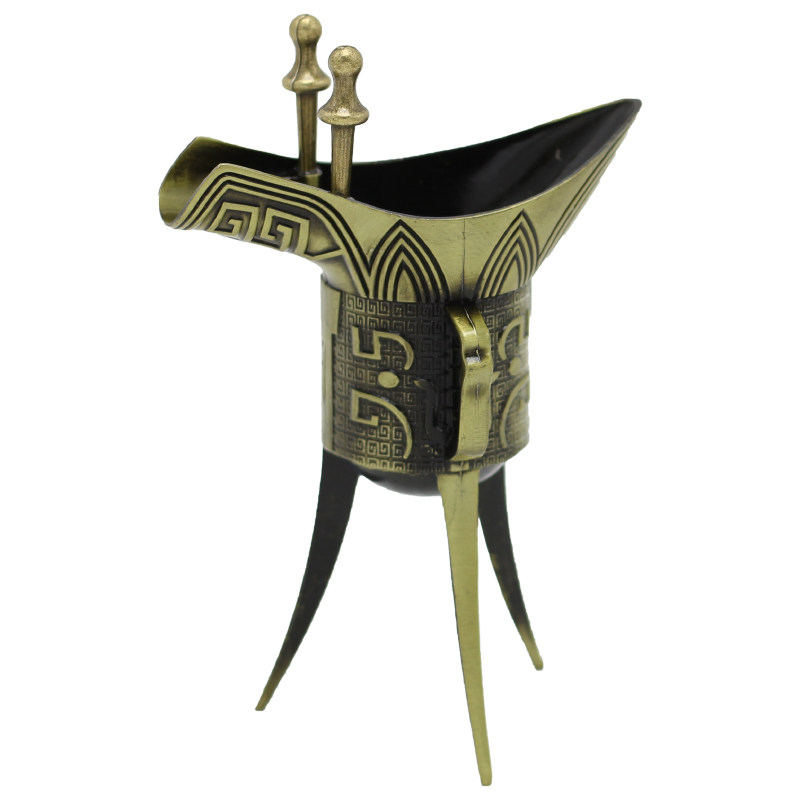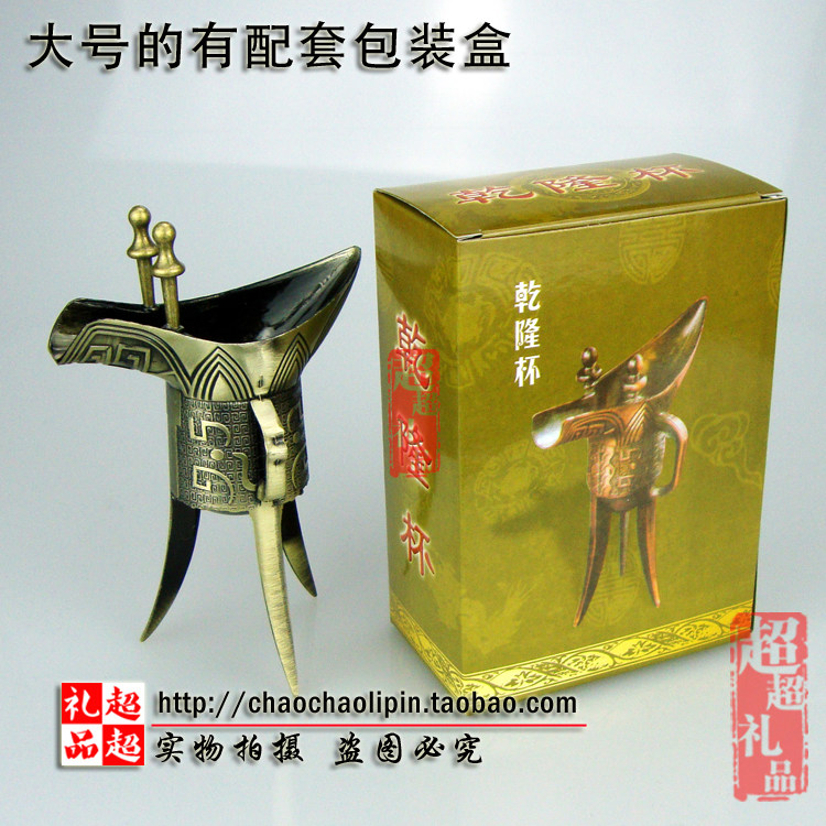 乾隆杯仿古复古青铜古玩三脚酒樽古代酒杯爵杯帝王杯古典表演道具