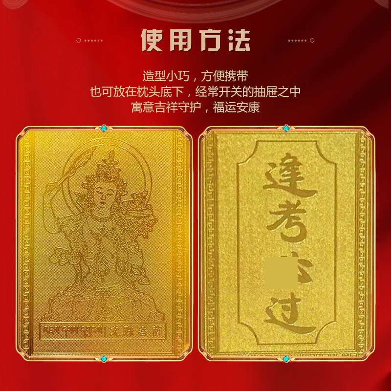 五台山文殊菩萨上岸学生平安护身逢必过高考金榜题名幸运符铜卡