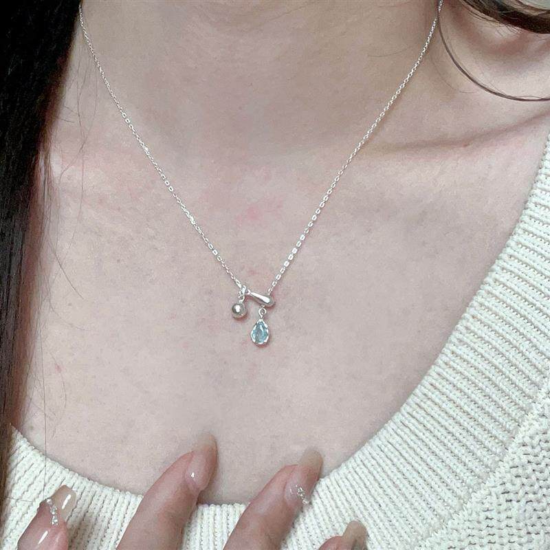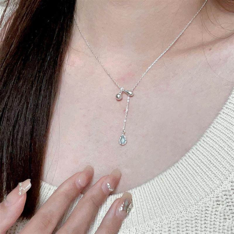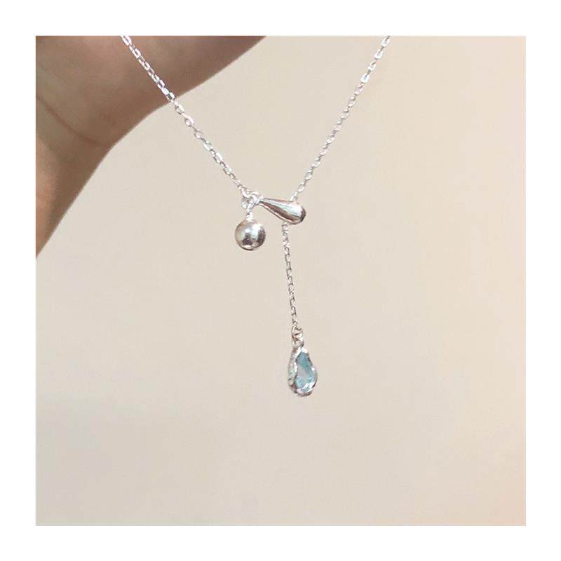 蓝色水滴流苏项链女配饰轻奢小众气质抽拉式可调节锁骨链2026新款