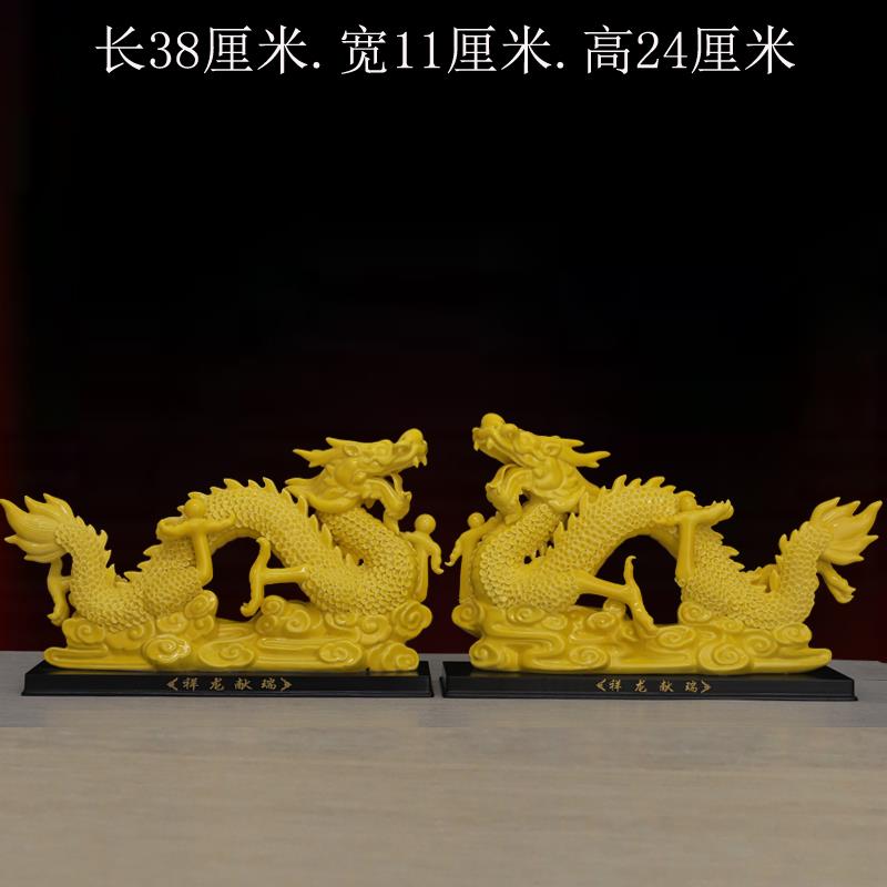陶瓷黄色龙摆件十二生肖龙招财风水办公室桌面瓷器雕塑工艺品摆设