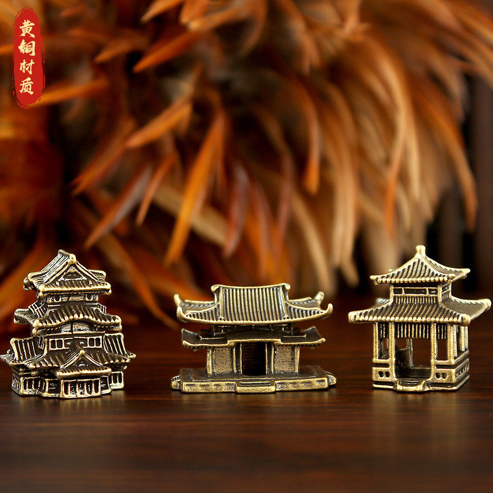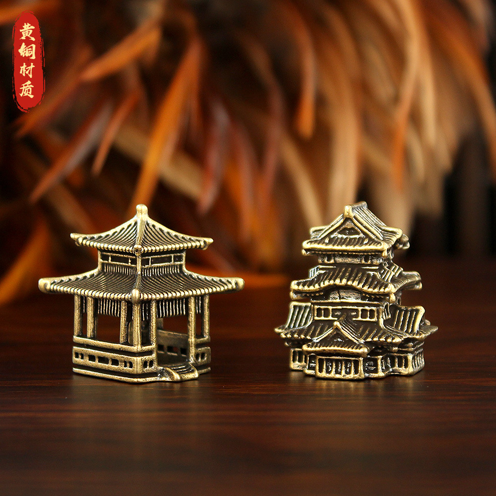 微景观造景黄铜凉亭古风复古小房子盆景山水池小摆件立体微缩模型