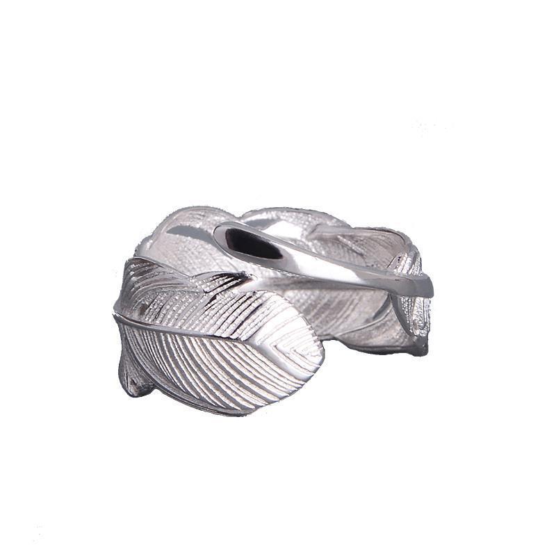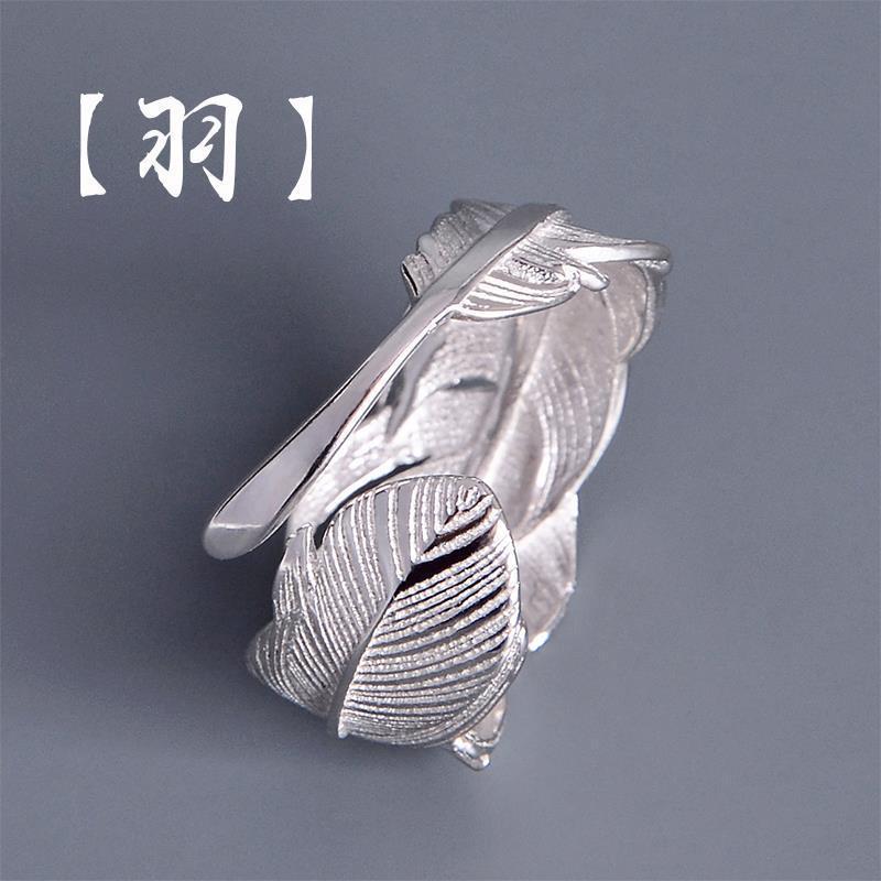 简约羽毛戒指女轻奢时尚百搭叠戴S925镀银开口指环ins小众食指戒