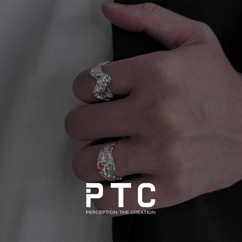 PTC S925纯银不规则冷淡风凹凸小众设计高级感开口可调节戒指男女