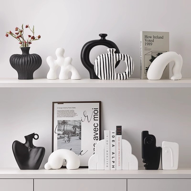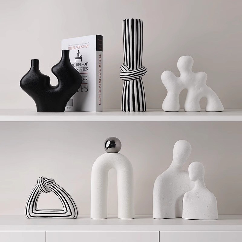 现代格调高级感黑白色艺术软装饰品摆件高档轻奢家居客.厅酒柜摆