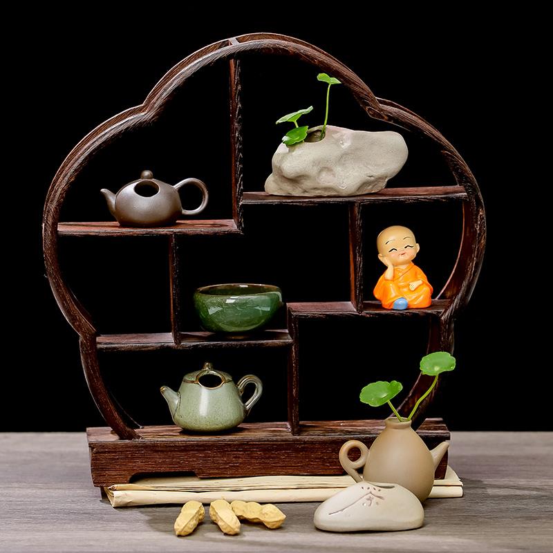 实木茶杯小型博古架新中式收纳桌面围炉茶室摆件展示置物架子摆设