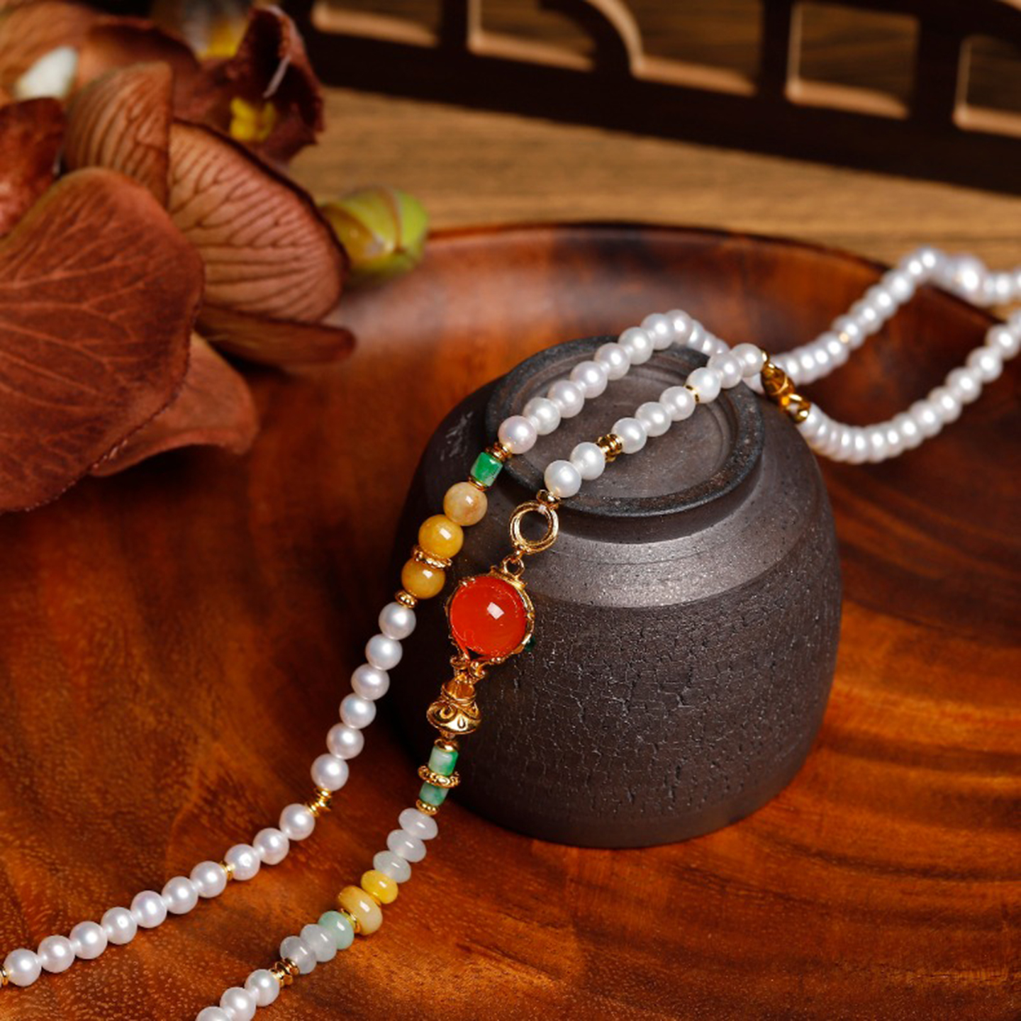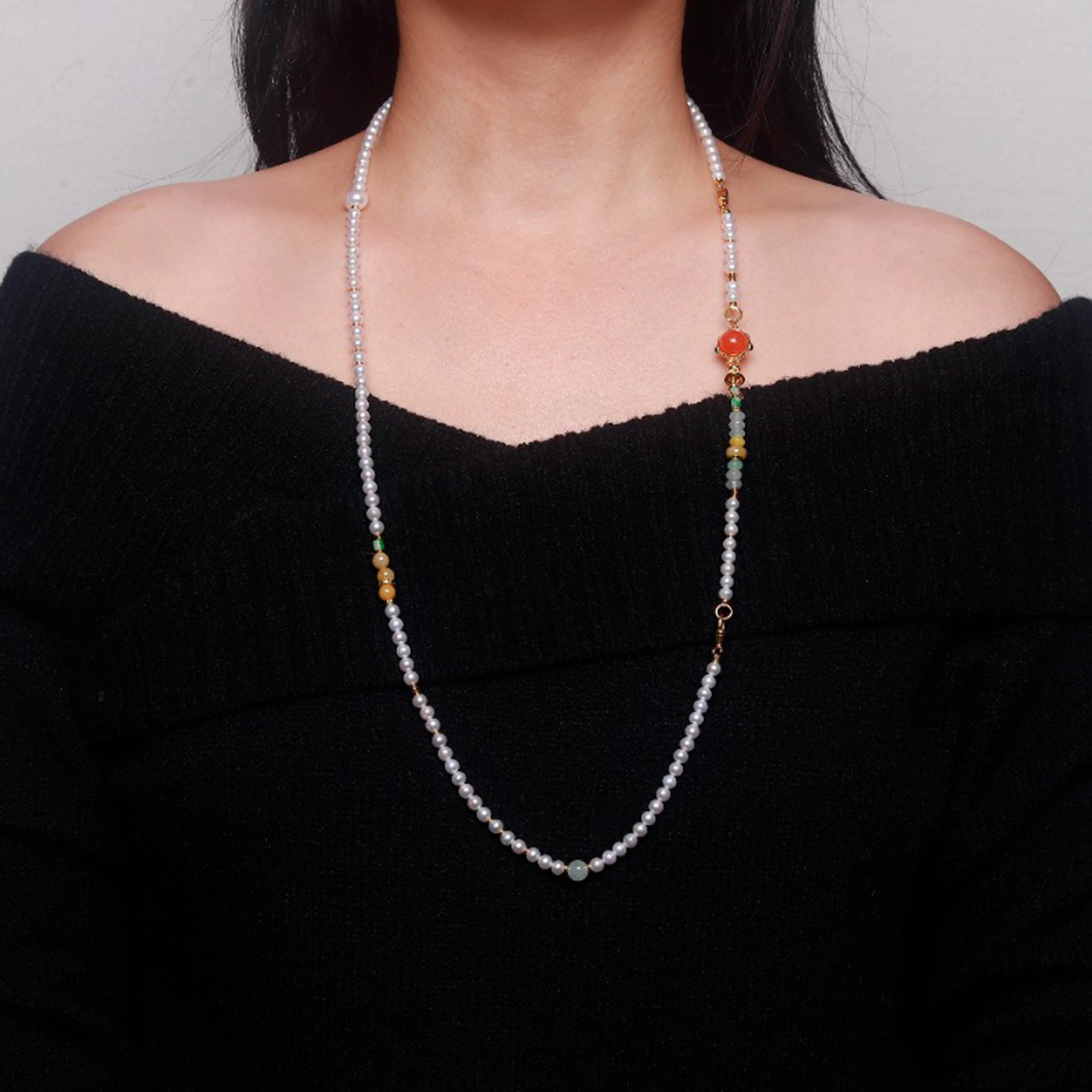 国风复古天然珍珠项链女新中式国风玉石毛衣链长款配旗袍女士配饰
