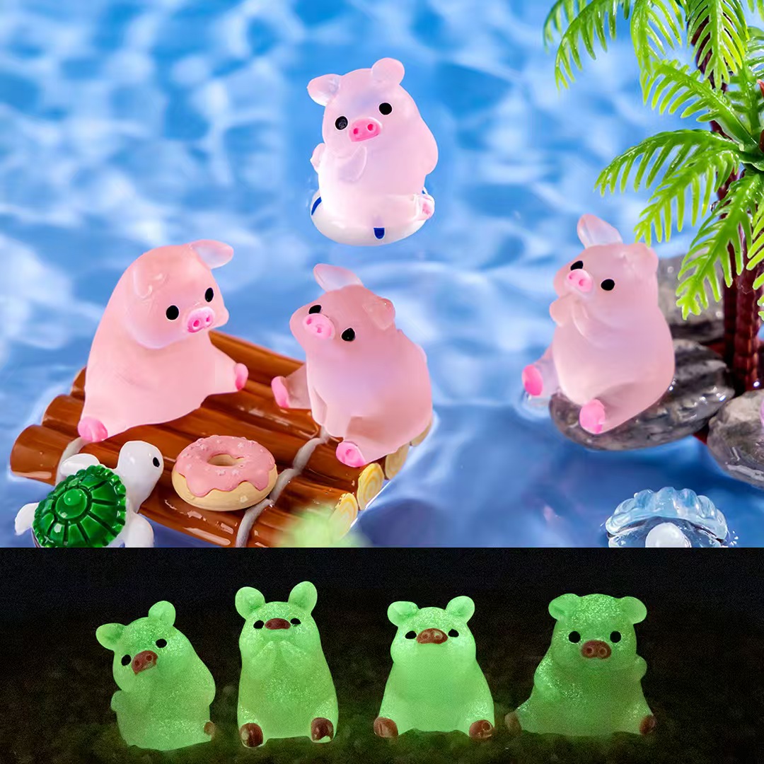微景观夜光迷你小猪小摆件手工奶油胶动物发夹配饰摆件树脂配件