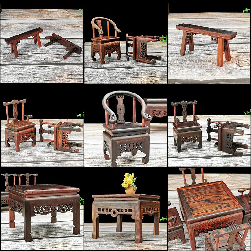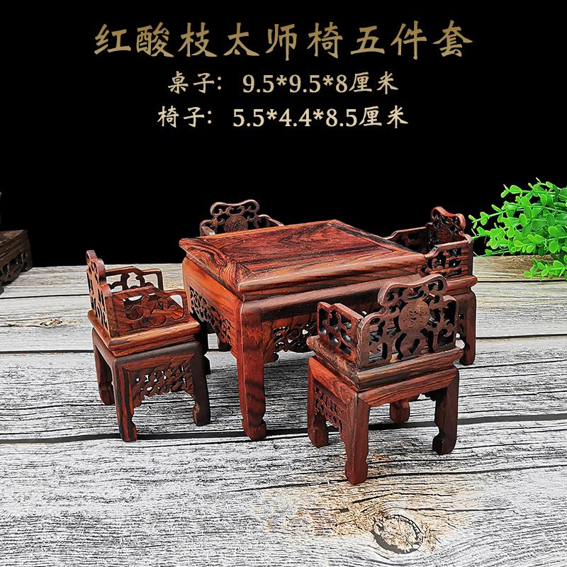 紫檀微型方桌古典桌椅模型蛋糕装饰椅子覆古迷你娃屋明清家俱摆件