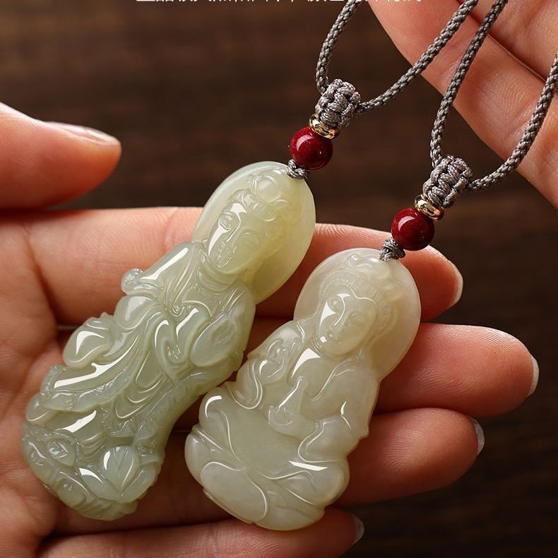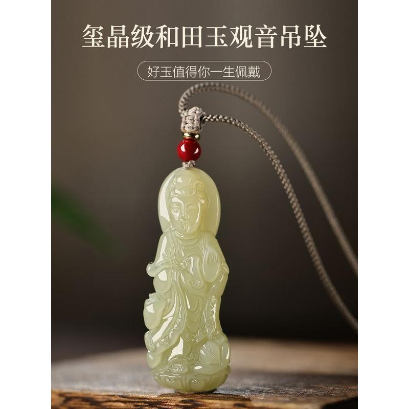 本命年和田色观音菩萨玉坠佛像吊坠男女玉牌玉石挂件玉佩项链饰品