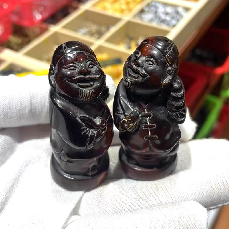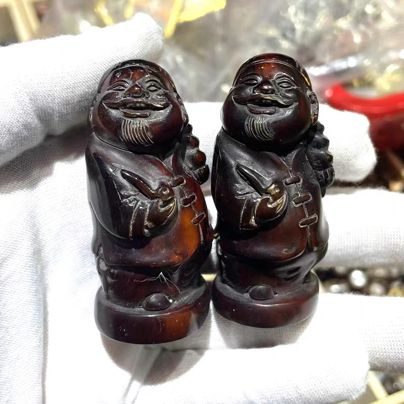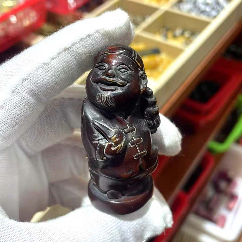 藏式文玩牙骨角雕刻地主财神吊坠高端X牦牛角把玩收藏品摆件古玩