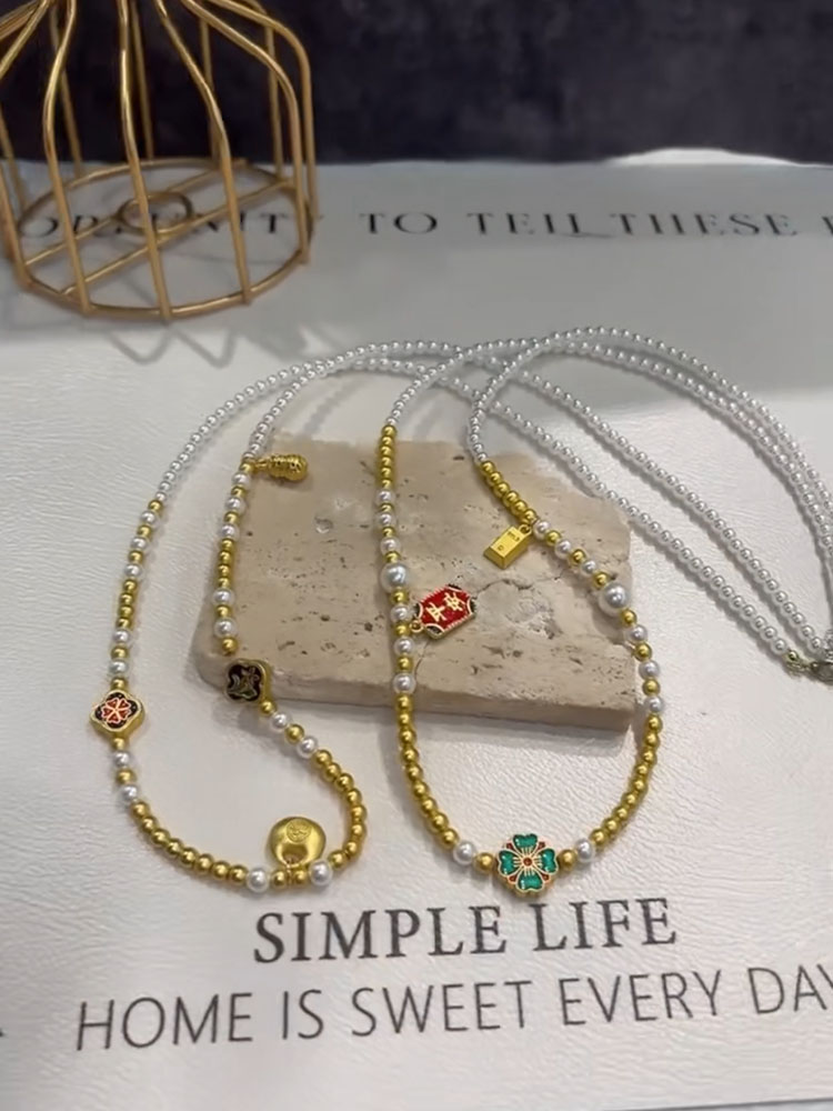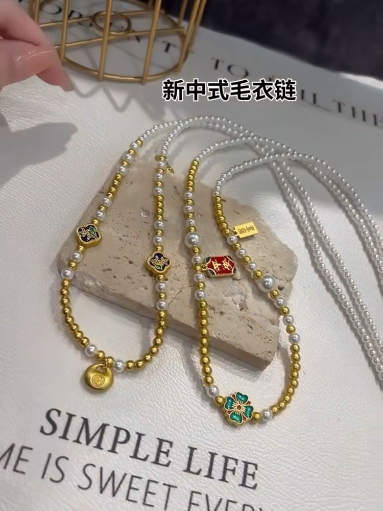 新中式国潮风福袋珍珠拼接毛衣链时尚平安吊坠百搭轻奢长款毛衣链