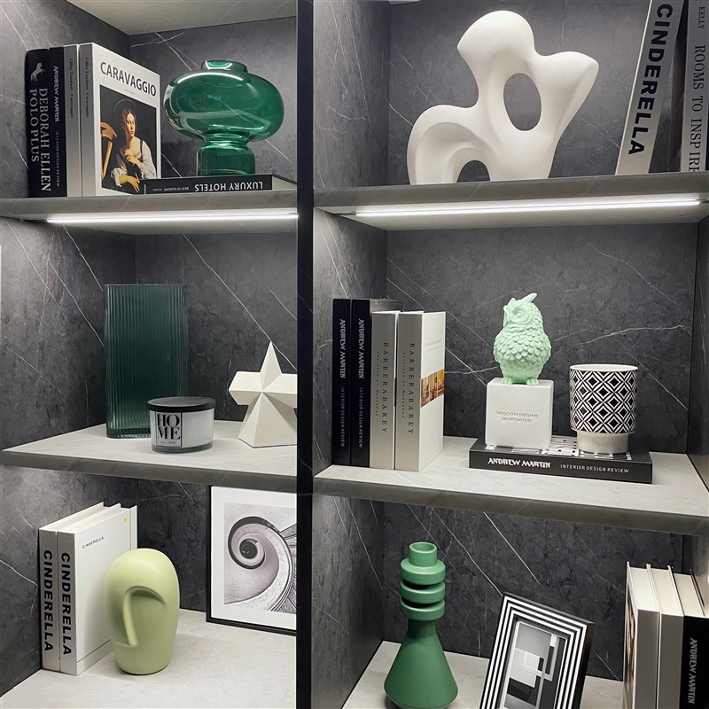 样板间书柜创意家居软装饰品摆件相架挂画陶瓷树脂玻璃组合ZH3419