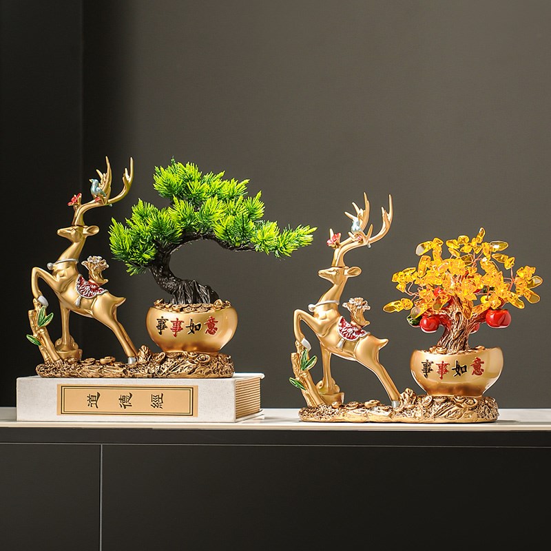 迎客松麋鹿客厅电视柜装饰品 乔迁新居入户玄关朋友送礼个性摆件