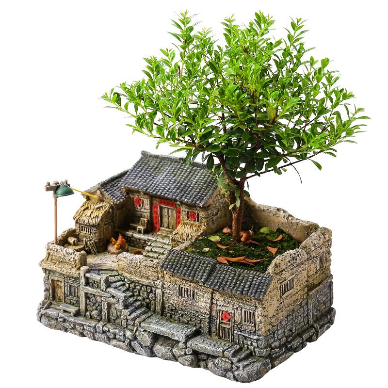 文竹盆景植物室内小盆栽客厅办公室桌面微景观造景老房子模型摆件