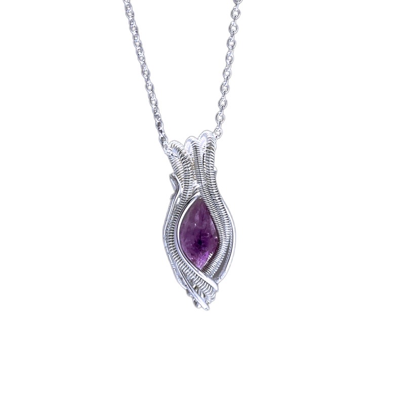 玄素Astro天然紫水晶护身石吊坠女紫色晶芽原石挂坠手工绕丝项链