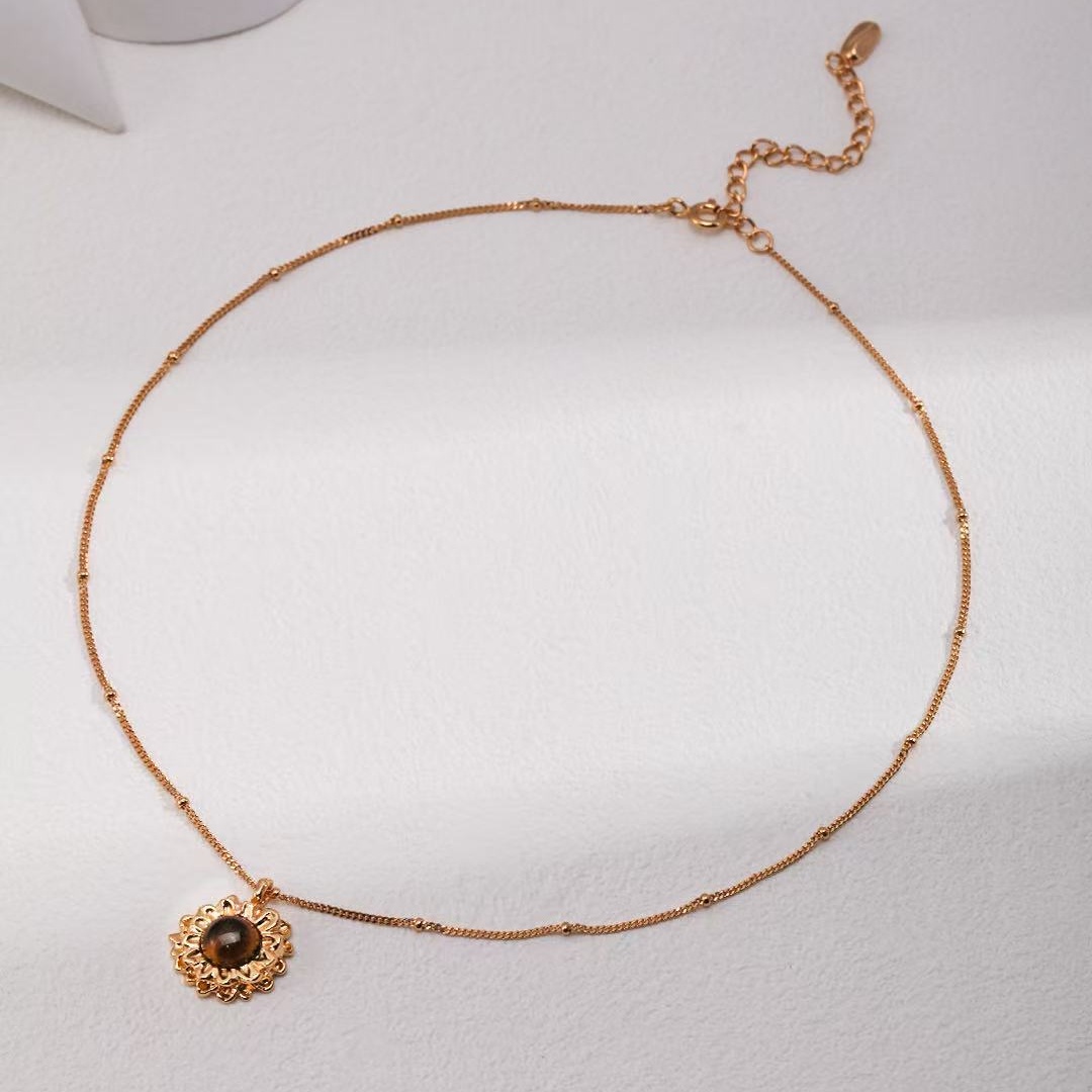 小众原创设计天然虎眼石925纯银项链法式复古风项链度假风项链