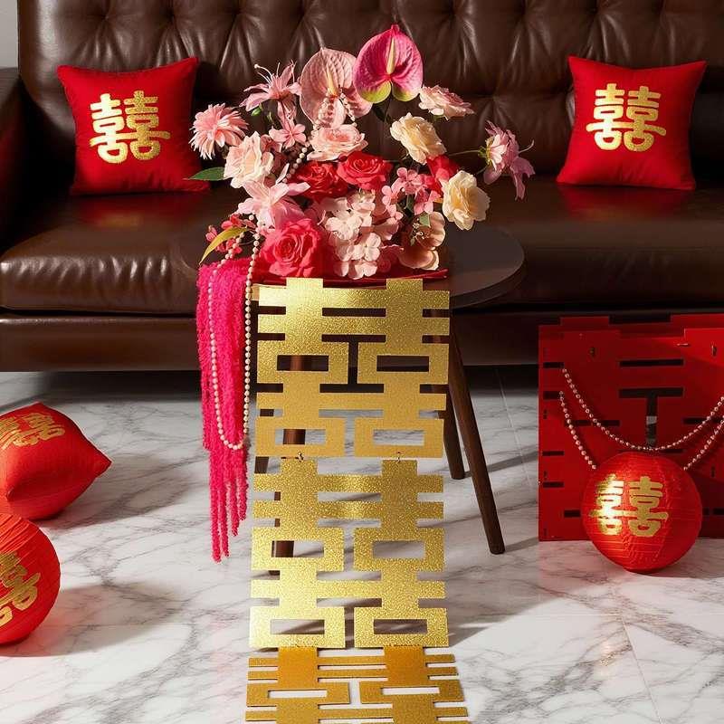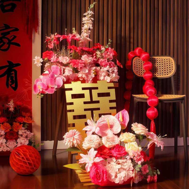 婚房布置仿真花摆件结婚礼新房客厅卧室喜字订婚酒店氛围装饰用品