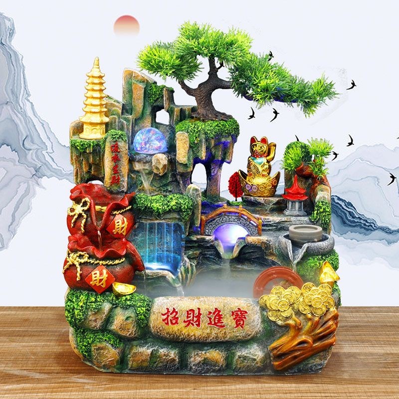 假山流水喷泉招财k鱼缸摆件循环水风D水轮生财客厅新店开业送礼礼