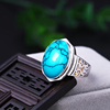 S925纯银戒指空托椭圆镶嵌绿松石蜜蜡男士戒托 11*16 12*17 13*18