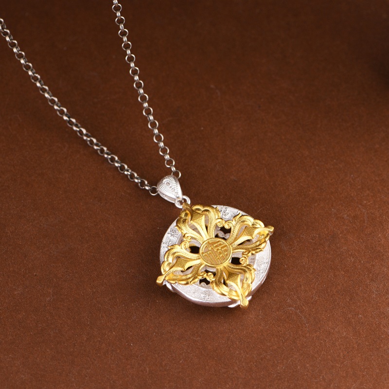 足银吊坠十字金刚杵花丝飘金工艺双面文玩挂件女款素银本色银项坠