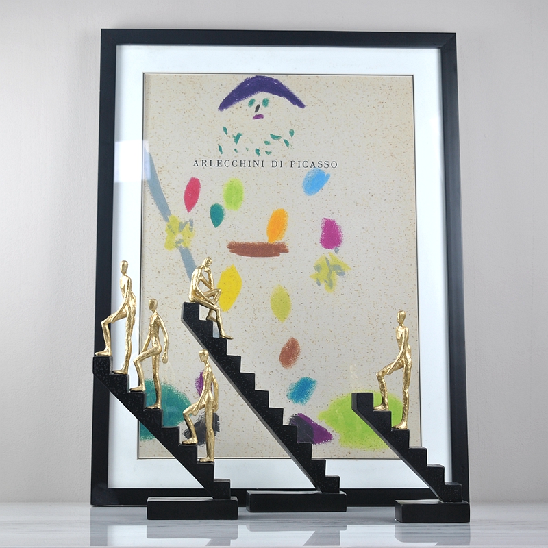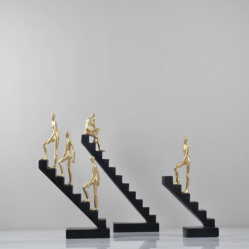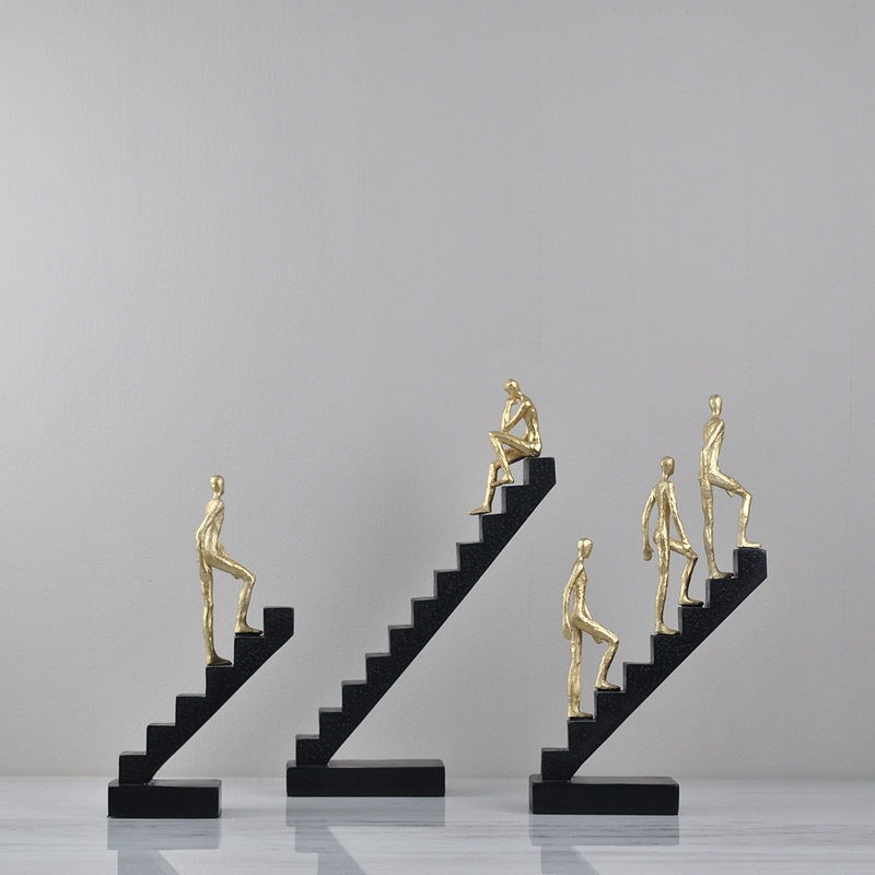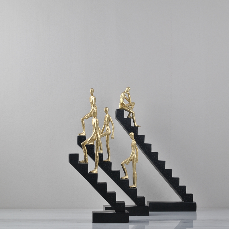 抽象后现代创意轻奢北欧风格哑金人物雕塑爬楼梯摆件家居摆台饰品