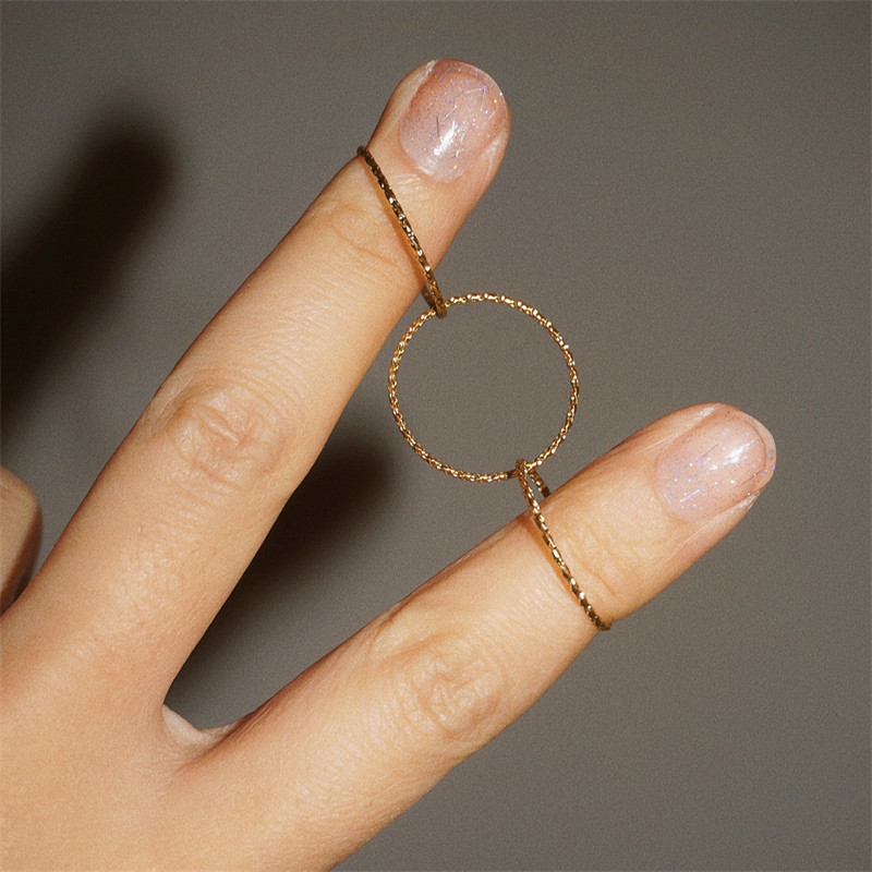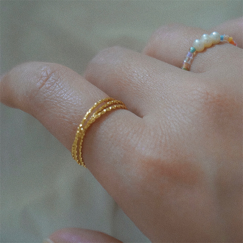 WITH GJ 简约耐看细闪三圈切花素戒指女洗手可戴钛钢镀金保色指环
