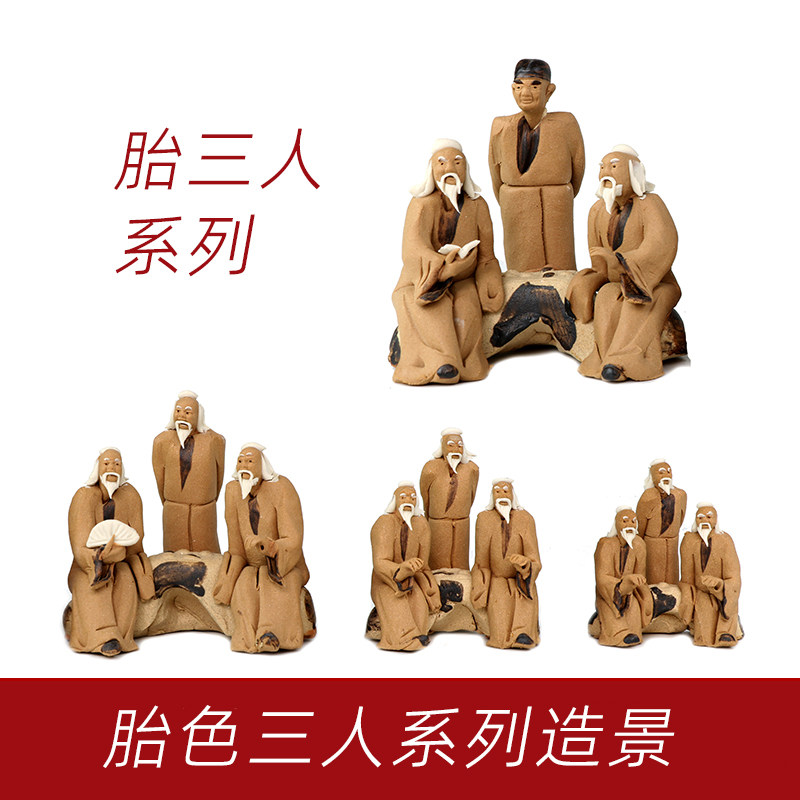 假山水景摆件人物盆景装饰品小摆件三人下棋田园鱼缸造景装饰庭院