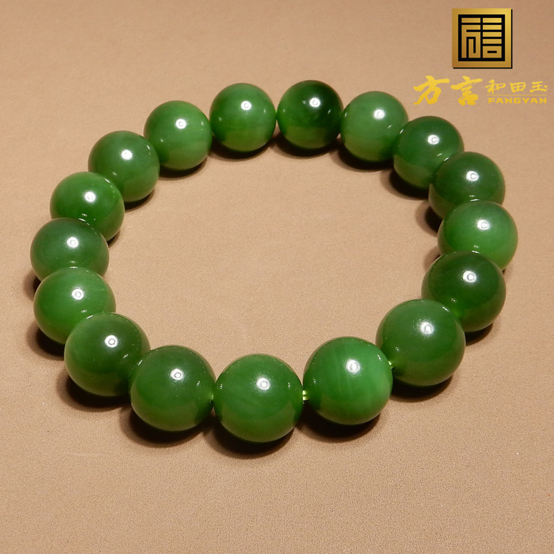 重磅方言品牌和田玉老俄料细腻油润正阳绿碧玉12mm圆珠手链手串A6