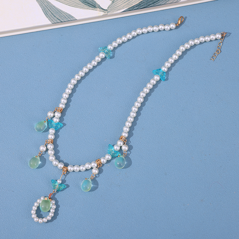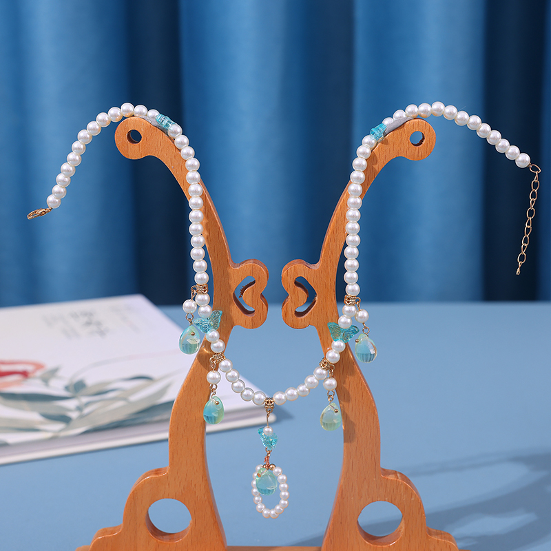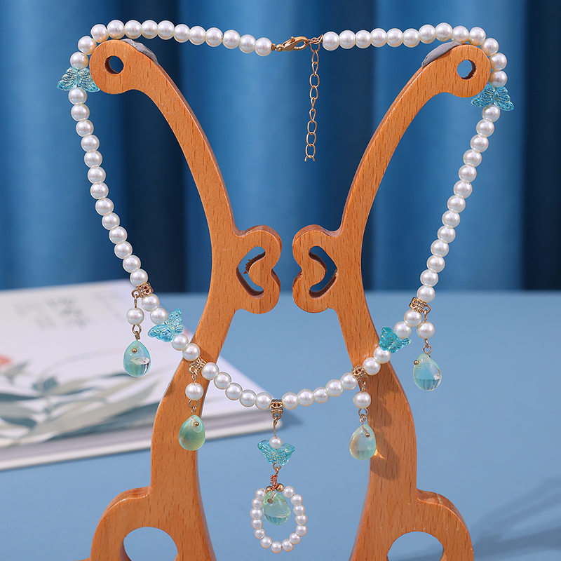 古风项链绿色水滴吊坠宋制坦领配饰古装软璎珞儿童颈链汉服饰品女