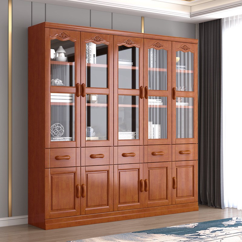 中式实木书柜带玻璃门书架组合3/5/6门储物柜书橱办公展示文件柜