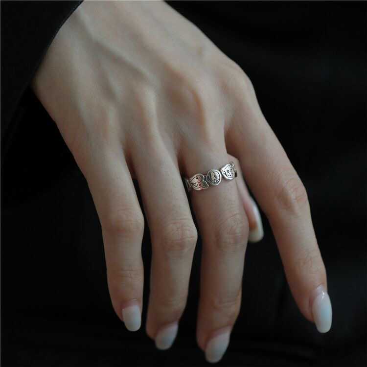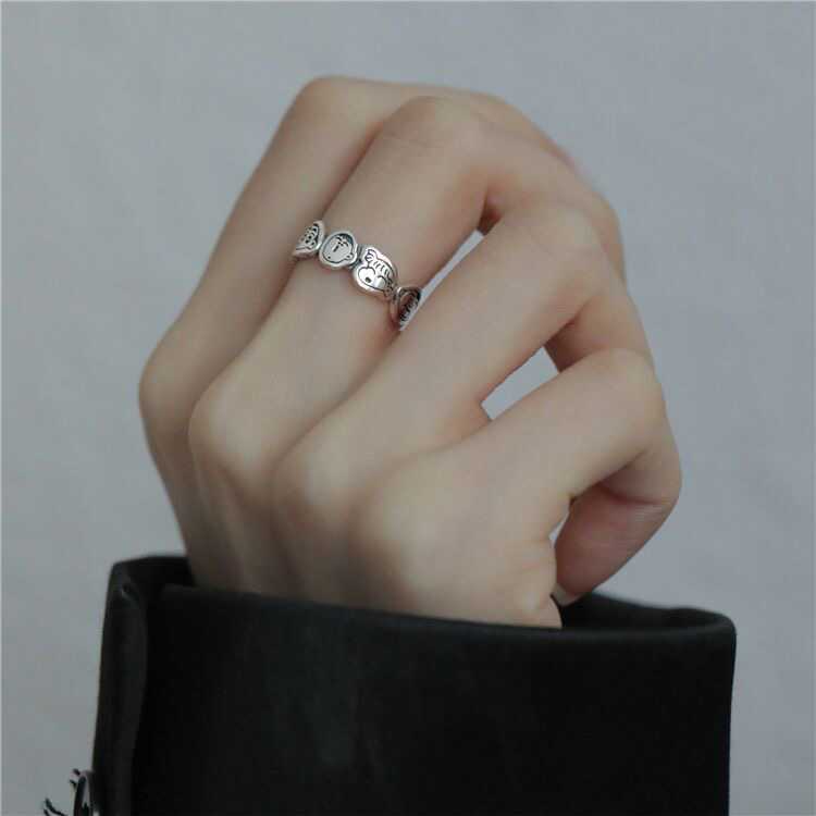 韩国时尚蜡笔小新一家人开口戒指女ins小众设计卡通食指戒可调节