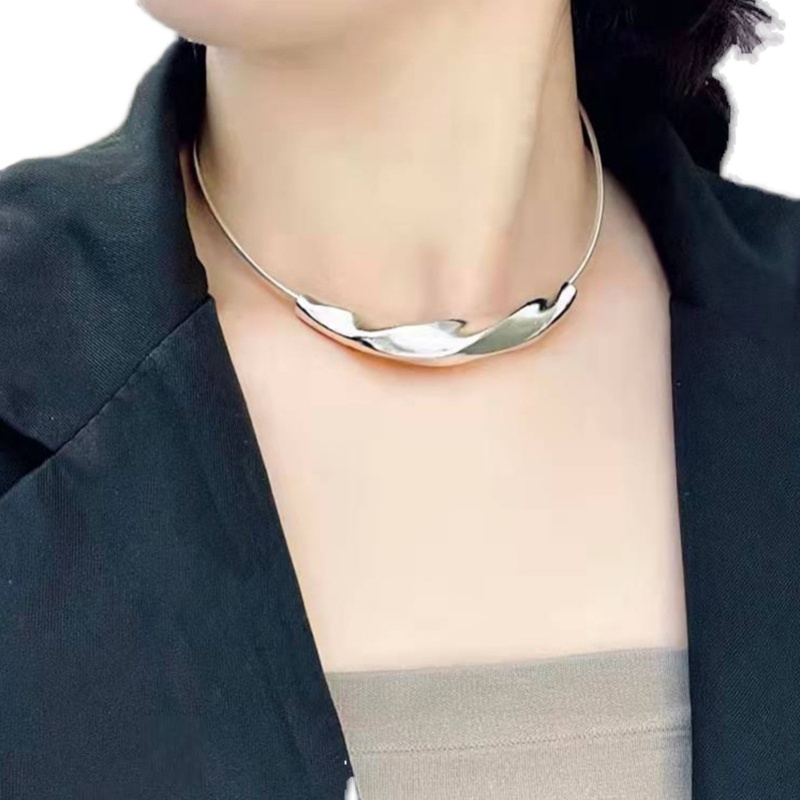 S925纯银手工弯管银项链女项圈气质轻奢颈链小众锁骨链2025年新款