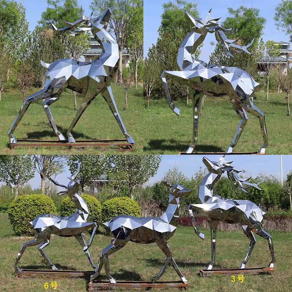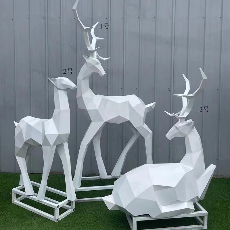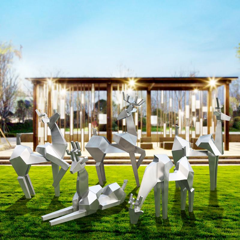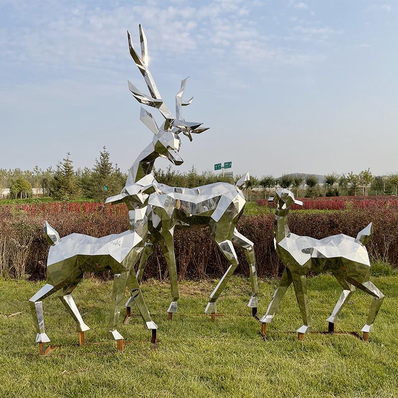 不锈钢鹿镜面雕塑金属几何切面鹿抽象镂空雕塑户外售楼处动物摆件